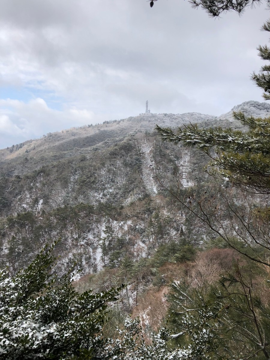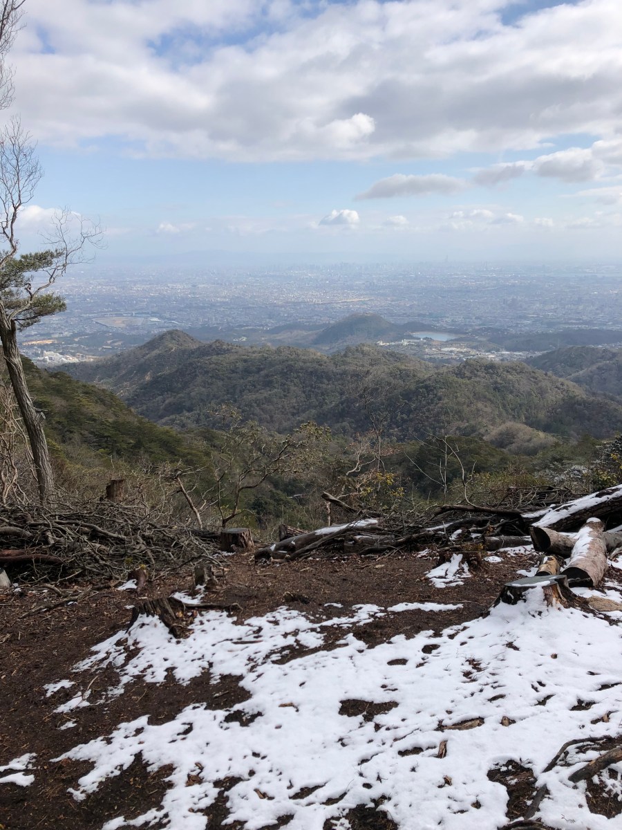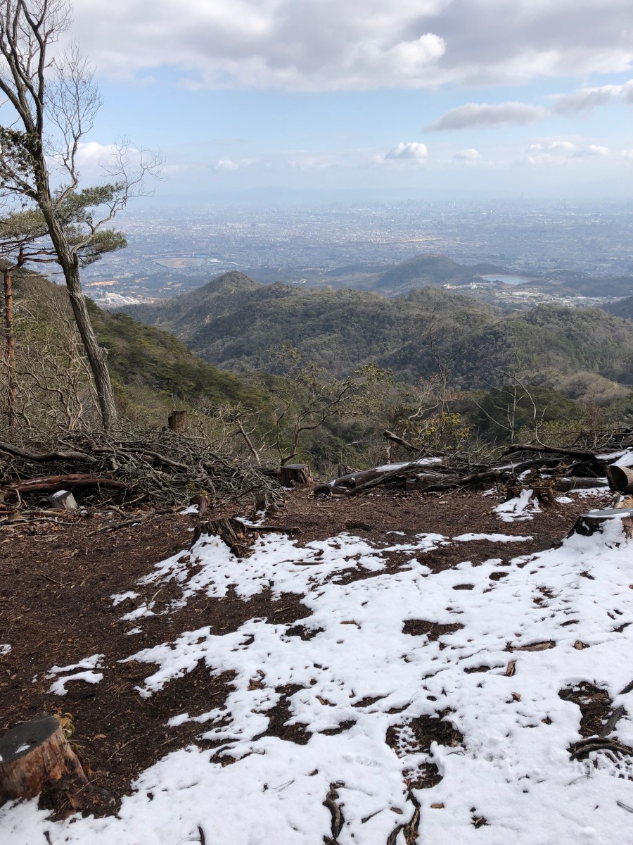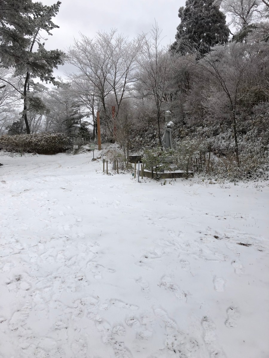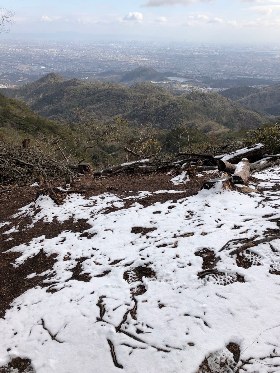 山頂は、雪ですね。六甲山神社にお参りしました。ここからは、東六甲縦走路に入り宝塚を目指します。