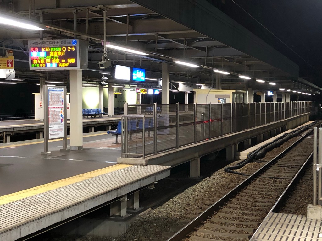 阪神尼崎駅:5時50分発、中山観音駅:6時54分着