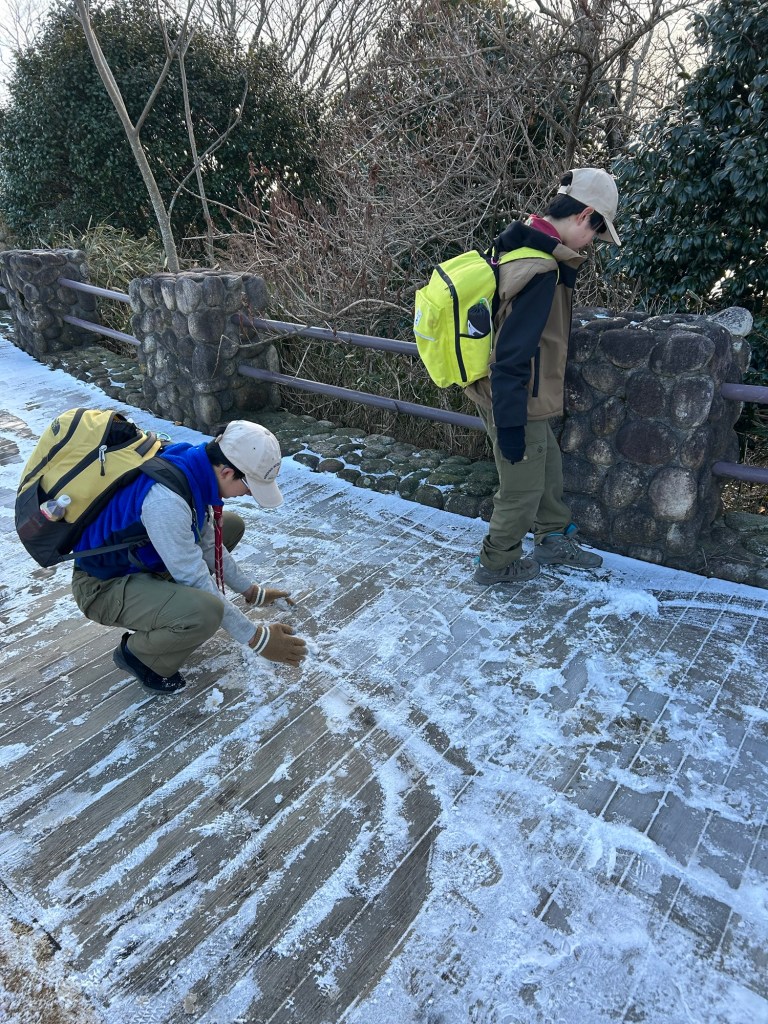 摩耶ロープウェイ駅前には、少し雪かなあ、残っていました。雪だるま作れましたね。