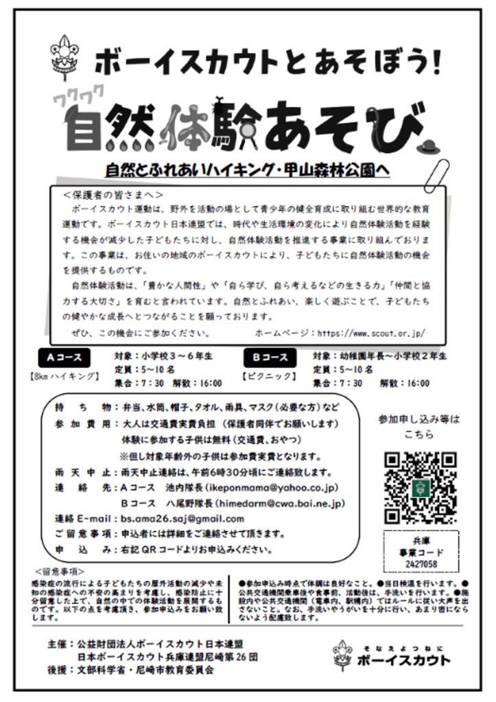 ワクワク自然体験あそび:自然とふれあいハイキング・甲山森林公園へグ甲山森林公園へ 共有: クリックして X で共有 (新しいウィンドウで開きます) X Facebook で共有するにはクリックしてください (新しいウィンドウで開きます) Facebook いいね 読み込み中…